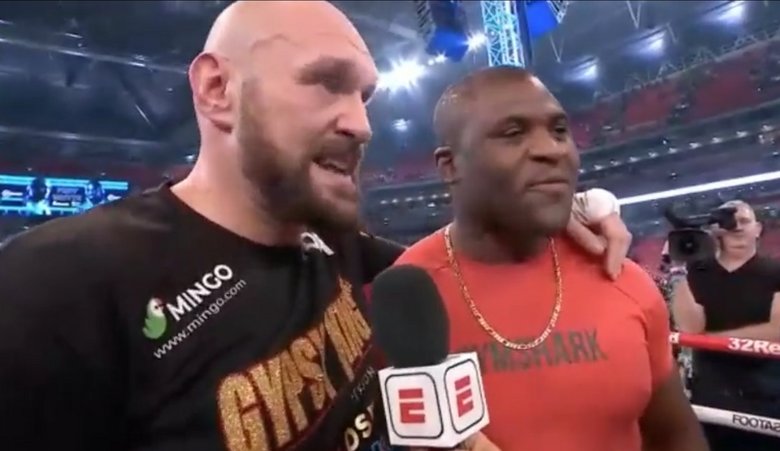 Plötzlich standen beide Hünen Schulter an Schulter im Ring und gaben ein Interview bei ESPN, in dem Fury sich offen für einen „Exhibition Fight“ (z.D. Schaukampf) gegen den Kameruner zeigte.