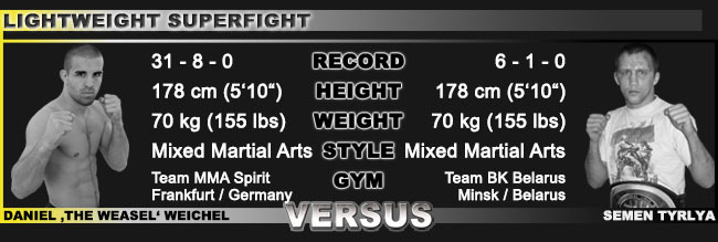 Das am Boden routinierte „Wiesel“ Daniel Weichel sprach mit uns ebenfalls über den Gegnerwechsel: „Tyrlya ist für seinen aggressiven Stil bekannt - ich freue mich darauf, mich mit ihm messen zu können.“