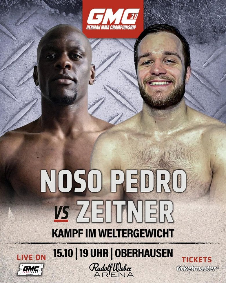Die Chance dazu bekommt der Deutsche im Hauptkampf von GMC 30 gegen Chequina Noso Pedro (5-2) aus den Niederlanden. Der 28 Jahre alte Holländer mit Wurzeln in Angola ist seinerseits ein routinierter Grappler. Besonders seine Guillotine ist gefürchtet, mit der er bereits drei Erfolge einfahren konnte. In den letzten beiden Auftritten wurde er jedoch nach zuvor fünf Siegen in Serie gleich zweimal in Folge bezwungen. Davon angestachelt will er wieder auf die Siegerstraße zurück und hofft gleichzeitig Zeitners großen Auftritt bei GMC ausbremsen zu können.