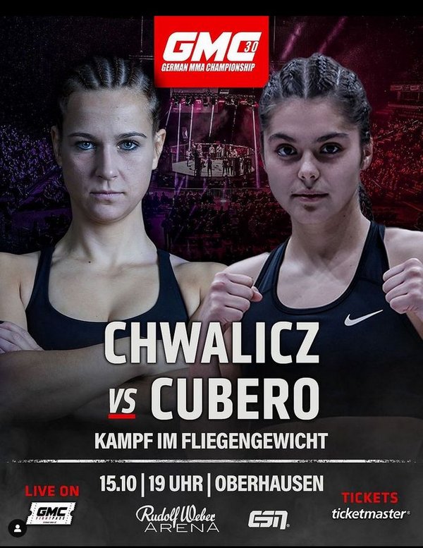 Cubero hingegen musste sich der amtierenden Vize-Europameisterin der IMMAF, Songül Karatorak, geschlagen geben, kehrte daraufhin motiviert zurück und setzte sich gegen Jess Roccarino bei der 11. GMC Fight Night durch. Besonders Cubero ist bekannt dafür, eine gute Schlaghärte zu besitzen, beweglich auf den Beinen zu sein und ein hohes Tempo zu fahren. Chwalicz hat selbst Erfahrung im Kickboxen und bildet sich im Grappling stets weiter – hier darf man eine fulminante Partie erwarten, die die Show stehlen könnte.