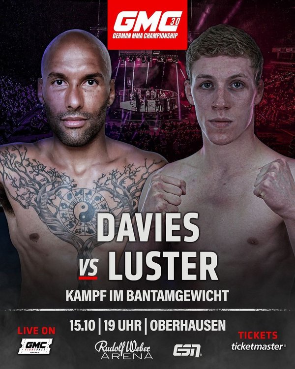 Rückenwind hat auch Davis vorzuweisen, schließlich hat der 37-Jährige drei Siege im Gepäck, wenn er in Oberhausen auflaufen wird. Ruslan Malsam, Dragan Pesic und Andrea Marrazzo gehören zu seinen Opfern, das liegt allerdings etwas zurück. Seit eineinhalb Jahren stand der Ire nicht mehr im Käfig, nutzte die Auszeit für Regeneration, Training und neuen Fokus, den er bei GMC 30 unter Beweis stellen will.