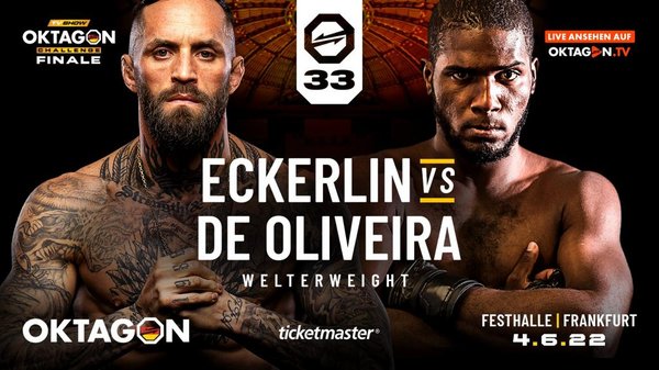 Wiederrum davor wird MMA-Star Christian Eckerlin (14-5) erstmals in seiner Karriere in Frankfurt auftreten. Der Weltergewichts- und Mittelgewichts-Champion mehrerer Organisationen ist seit fünf Jahren unbesiegt und plant nun vor heimischer Kulisse seinen achten Erfolg in Serie einzufahren. Ihm gegenüber steht Denilson Neves De Oliveira (17-8), ein kampferprobter Brasilianer, der die Erfolgsserie des Deutschen stoppen will. De Oliveira ersetzt den zuvor eingeplanten Adam Niedzwiedz, der kurzfristig ausfiel aufgrund einer Nackenverletzung, die er sich im Sparring zuzog.