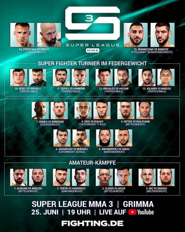 Super League MMA 3: Irannezhad und Banovic im Titelkampf, Dyrschka will nächsten Sieg