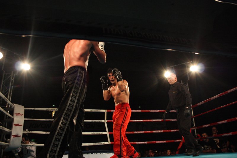 Weniger Glück hatte Arslan`s Team-Kollegen Nicolaj Mentschow. Dieser traf im Deutschen Titelkampf der WKA auf Sascha Baschin (Trier). Doch gerade als der Kampf so richtig Fahrt aufnehmen wollte, war er auch schon wieder vorbei. In Runde 2 konnte Menschow seinen Kontrahenten mit einem Schlaghagel eindecken, das dieser vom umsichtigen Ringrichter Goran Filipovic angezählt werden musste. Der erste Titelgewinn für Nürtingen lag in der Luft. Doch Baschin bewies Kämpferherz und fightete zurück. In der Pause zur 3. Runde musste Menschow dann den Kampf wegen einer Zehenverletzung aufgeben. Tragisch, aber so ist nunmal der Kampfsport.